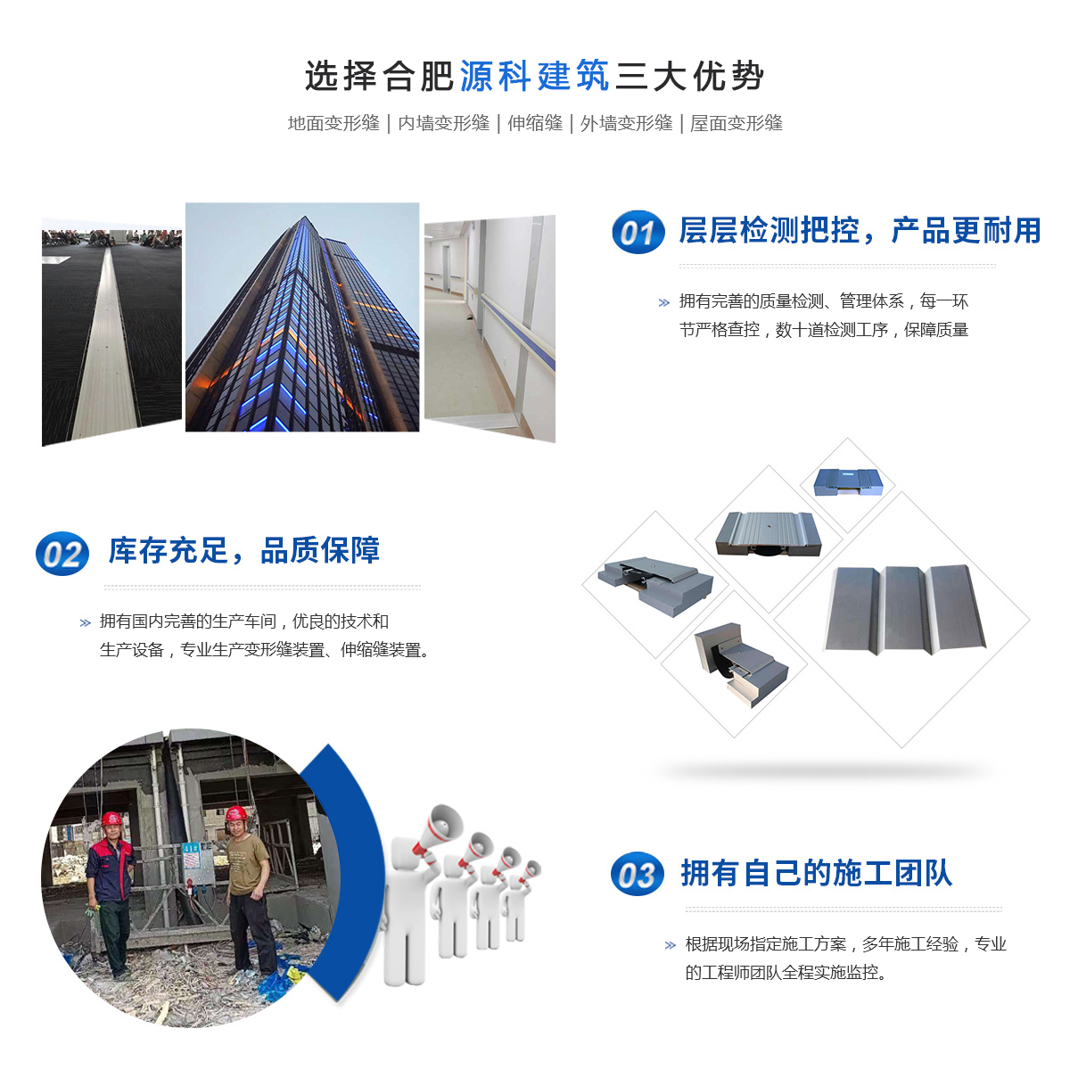 合肥源科建筑科技有限公司位于長(zhǎng)三角城市群副中心的合肥,面向國(guó)內(nèi)外生產(chǎn)銷售是專業(yè)研發(fā)及產(chǎn)銷各種建筑伸縮縫、地面變形縫、內(nèi)外墻變形縫等裝置。參與了省內(nèi)大型工程(醫(yī)院、學(xué)校、工廠、大型商場(chǎng)超市等)建設(shè),是諸多建設(shè)單位和設(shè)計(jì)學(xué)院長(zhǎng)期合作單位,在建筑變形縫伸縮縫行業(yè)樹(shù)立了自己的專業(yè)形象。本公司根據(jù)建筑業(yè)的發(fā)展和用戶的實(shí)際需要,深入研制出目前國(guó)內(nèi)新型的建筑伸縮縫裝置。按照使用部位分為四個(gè)類別:樓地面變形縫;內(nèi)墻、頂棚吊頂變形縫;外墻變形縫;屋面變形縫;按照變形...